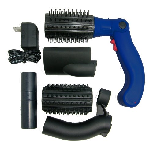 Ergonomically designed handle - Change Directions at the push of a button - Brush head can be removed for easy cleaning - Takes only minutes a day to brush pets - Dogs/Cats/Equine - Accessories Included - Vacuum attachments with adpter, Vacuum Hose Adapter, Curry Brush, Bristle Brush, Rechargeable System Included